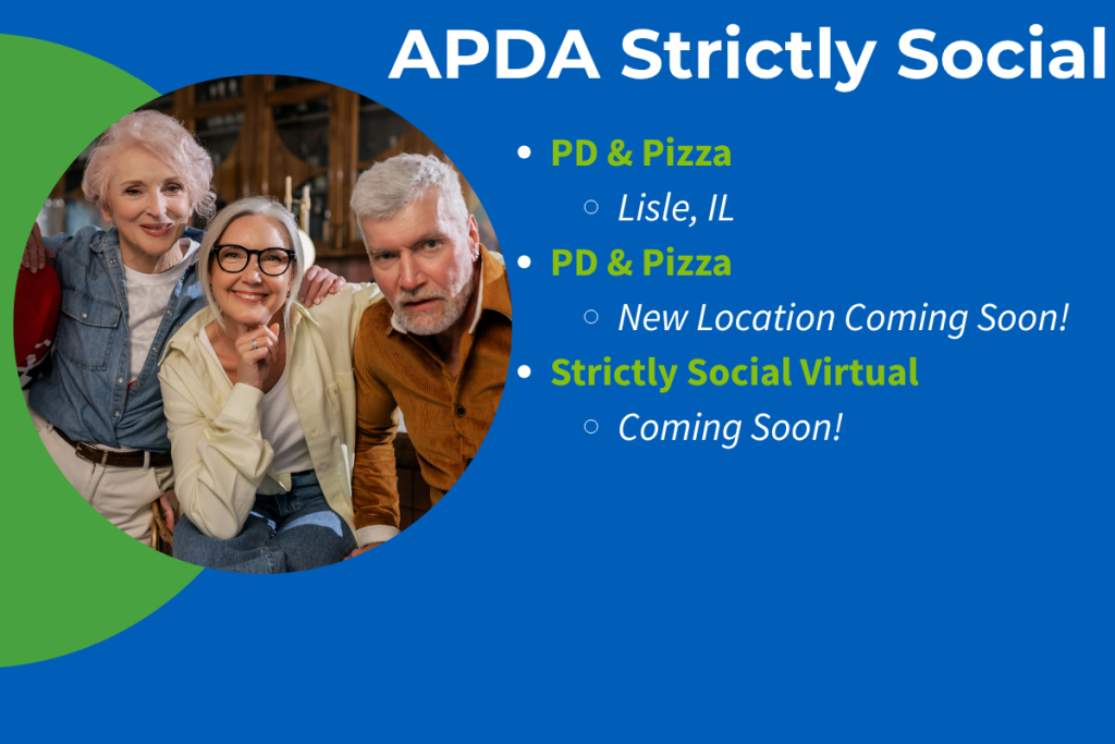 Welcome to the APDA Illinois Chapter Get Connected Today! Support Groups Resources & Information Join Email List Get Your Welcome Packet Volunteer About the APDA Illinois Chapter The APDA Illinois Chapter works tirelessly every day to support and empower those in our community who are impacted by Parkinson’s disease (PD). We promote hope and optimism through innovative services, programs, education, and support, while also funding vital research. We are here to help you and your loved ones every step of the way. Contact Information American Parkinson Disease Association Illinois ChapterP. O. Box 2164Naperville, IL 60567-2164 Email: apdail@apdaparkinson.orgPhone: (708) 329-9527 Services we provide: Educational programs Support groups Exercise programs Information and referrals and much more Information & Referral Center University of ChicagoParkinson and Movement Disorder Clinic Nicole Reidy, DSW, LCSW, ICDVPNicole.reidy@uchospitals.edu (773) 834-1688 (office)Tao Xie, M.D., Medical Director Help Our Community Make an impact to help people with Parkinson’s in your local community. Your ongoing support makes our work possible. Please give what you can so that we may see a cure for Parkinson’s in our lifetimes. Donate Today Chapter MenuResources & SupportWellness ProgramsAPDA Strictly SocialAdd me to the APDA Illinois Chapter Mailing ListEducationIllinois Support GroupsExerciseCognitive ExercisesResource InformationNewsletterOptimism WalkAbout APDA IllinoisContact UsCareer & Volunteer OpportunitiesIllinois Chapter Staff and Board of DirectorsWays to GiveBecome A SponsorDonateUpcoming Chapter Events Contact APDA Email: apdail@apdaparkinson.org Phone: 708-329-9527 Address: PO Box 2164 Naperville, Illinois 60567-2164 Support Our Mission To support the PD community, please click the button below: Donate Today Ask a Doctor Share Your Story Search DonateChapter Menu