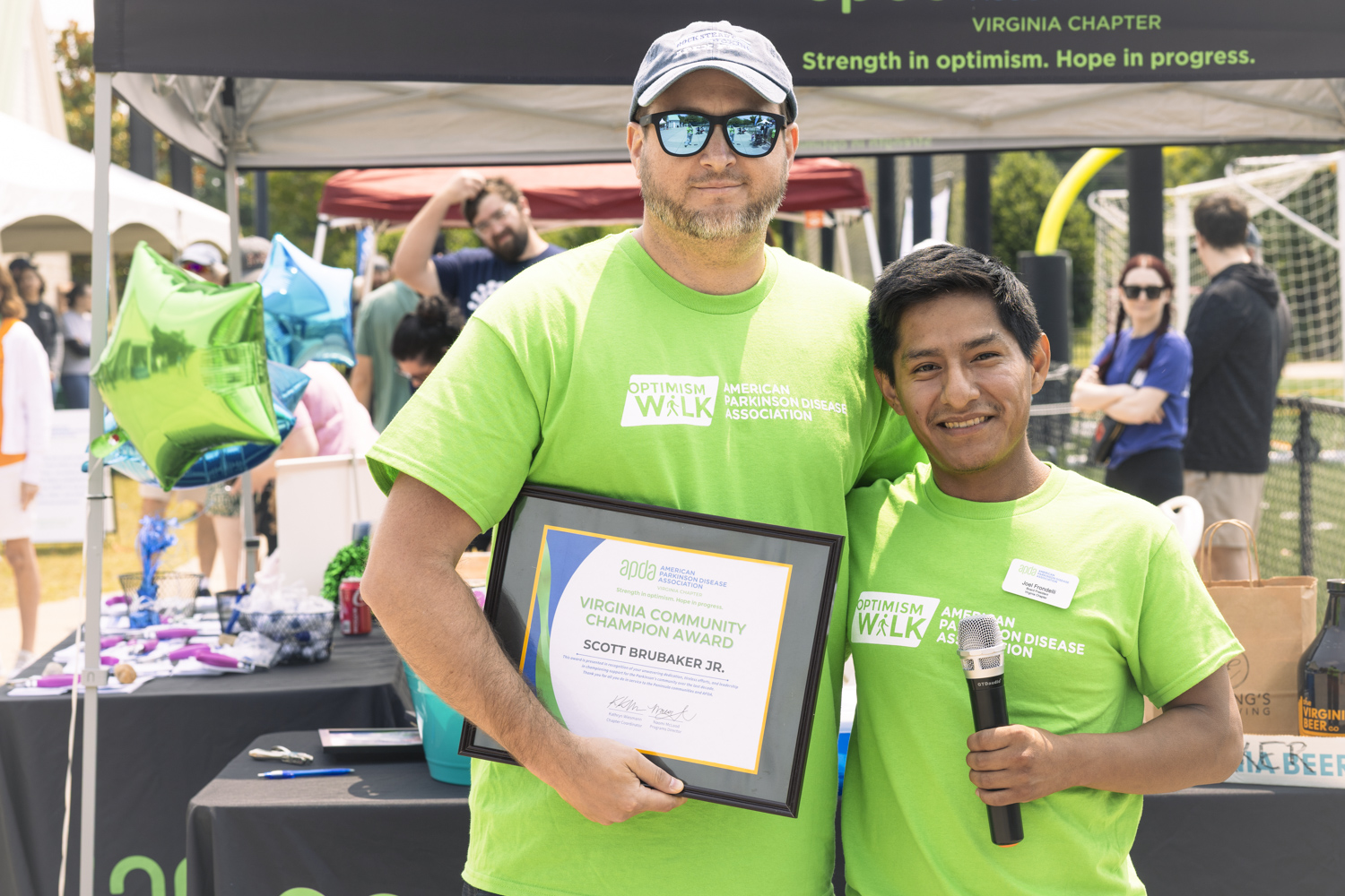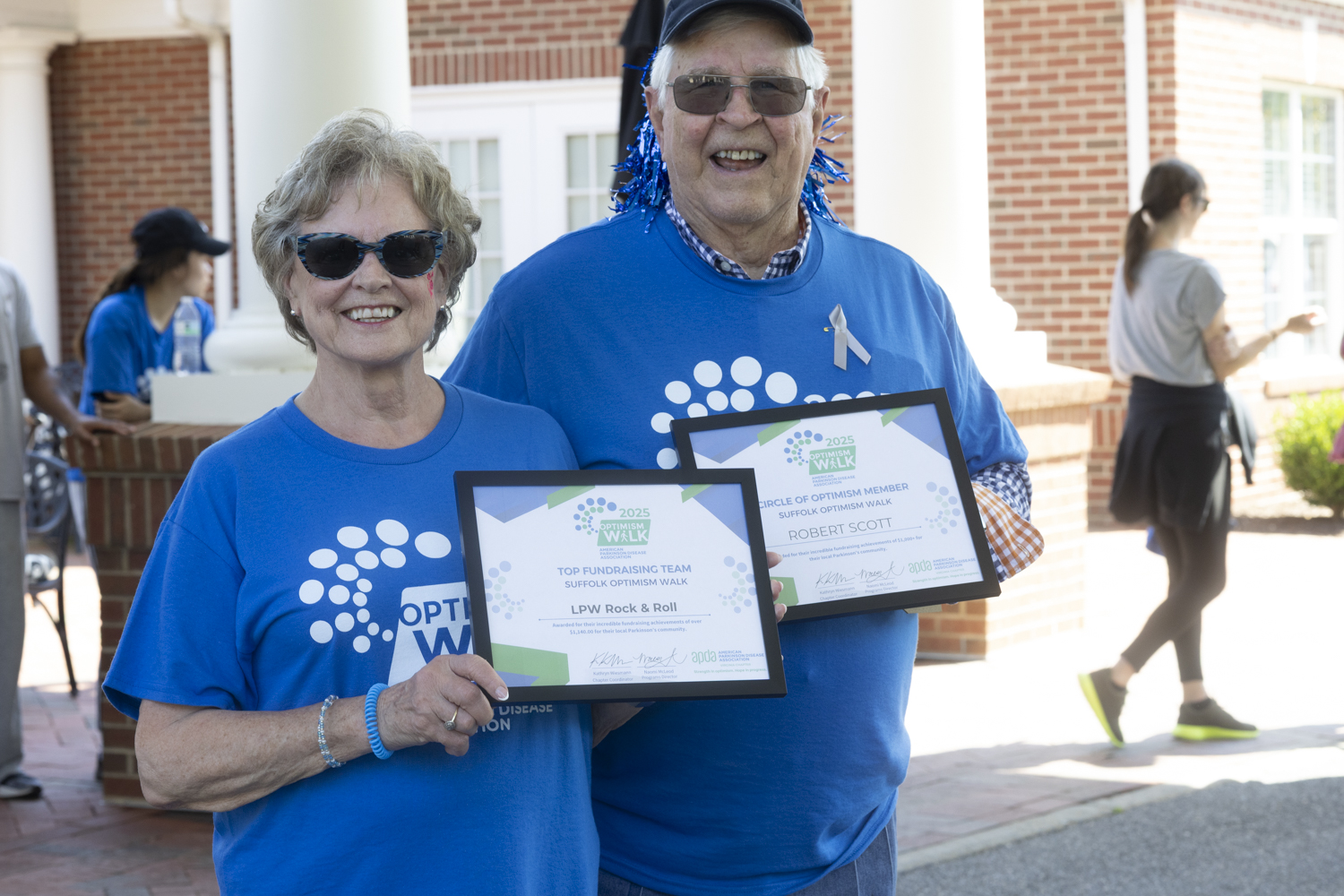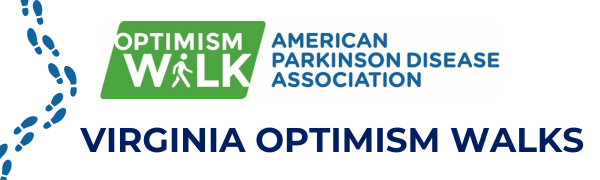 Virginia Optimism Walk Join our CommunityUpcoming Virginia Chapter EventsGive to the APDA Virginia ChapterBecome a Sponsor 2026 Optimism Walks The Optimism Walk is part of a nationwide movement to mobilize and inspire people to step up and help put an end to Parkinson’s disease. Join us at one of our many locations across the nation and help us get one step closer to supporting APDA’s critical mission: Helping all people with PD live life to the fullest. Join us in 2025 for a fun-filled, non-competitive walk, that raises much-needed funds and awareness of Parkinson’s disease. This year, join us in Norfolk, Suffolk, or create your own walk! The Optimism Walk traditionally features a Parkinson’s resource fair, lawn games, PD exercise, dance, or singing demonstrations, a photo booth, and more! Find Optimism Near You May 2, 2026 | Norfolk REGISTER & WALK WITH NORFOLK September 12, 2026 | Suffolk SAVE THE DATE! Sponsor the 2026 Optimism Walk 2025 Optimism Walk The Optimism Walk is a nationwide movement to mobilize and inspire people to step up and put an end to Parkinson’s disease. We walk because every six minutes someone is diagnosed with Parkinson’s. Parkinson’s affects approximately 25,000 Virginians and that number grows every year. Our goal is to spread awareness and promote early intervention so we can help those with Parkinson’s continue to live a long and meaningful life and manage their symptoms. You are more than your symptoms. Thank You to our amazing 2025 Sponsors and Friends of APDA Virginia who helped to make these walks happen! Gold Sponsors Bon Secours Health Medtronic Silver Sponsors Amneal Riverside Health System Bronze Sponsors Emergency Physicians of Tidewater Sentara Health Boston Scientific Insightec TowneBank Virginia Health Services Brookdale Chambrel Williamsburg (Concessions Sponsor) Virginia Beer Company Suffolk Local Sponsors Attend Home Care Monge & AssociatesInjury & Accident Attorneys Friends of APDA Virginia Water Sponsors: Compass Senior Solutions, Insurance Advisors, LLC, Altmeyer, Bucktrout Funeral Home & Crematory, Faint Not Your 4ever Home Concessions Sponsor: Brookdale Chambrel, Rebirth Heals Ride Along Sponsors: Blocker Family YMCA Norfolk & Price Dodson, Spinclusion Photography: Dyan Witt PhotographyMemories by Melanie DJ & Emcee SponsorsThe Burg FM 93.5, Marc Davis Sports, DJ Jason, Line Dancing with Letrice For questions, email kwiesmann@apdaparkinson.org or call 757-495-3062